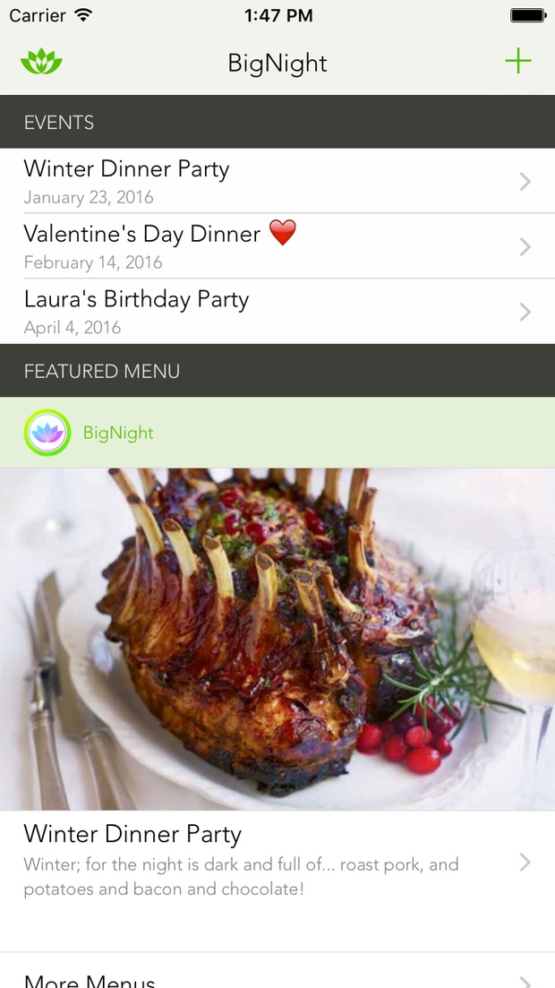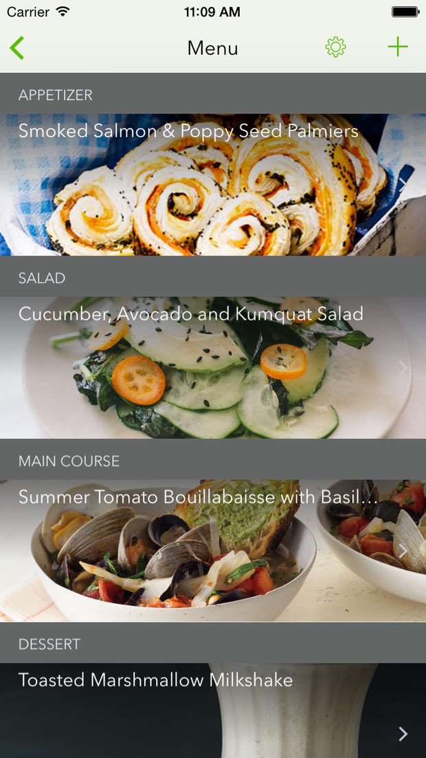 Set your menu. Choose recipes from your favorite web sites, your Pinterest pins, or Evernote. Organize shopping lists. Add reminders.